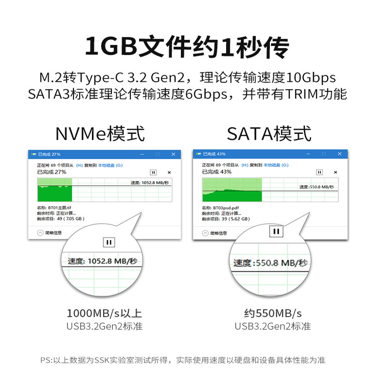NGFF双协议移动硬盘盒铝合金Type SSK NVMe SATA C接口 飚王M.2