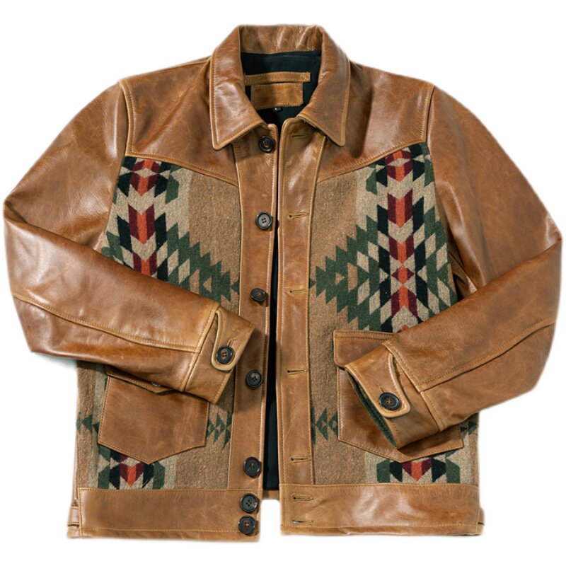 真皮皮衣纳瓦霍风格 复古夹克男士 外套 油蜡牛皮美式 真正成本价