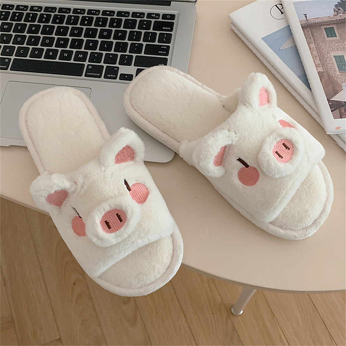 假日 外穿防滑厚底居家保暖棉鞋 可爱米菲兔包跟加绒棉拖鞋 女秋冬季