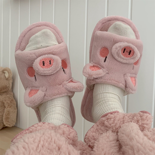秋千 外穿防滑厚底居家全包跟加绒保暖棉鞋 可爱米菲兔棉拖鞋 女冬季
