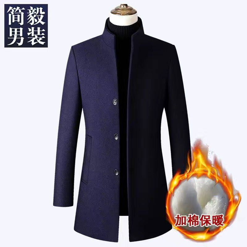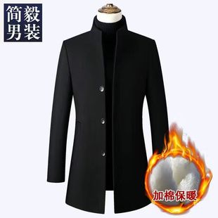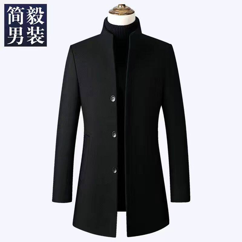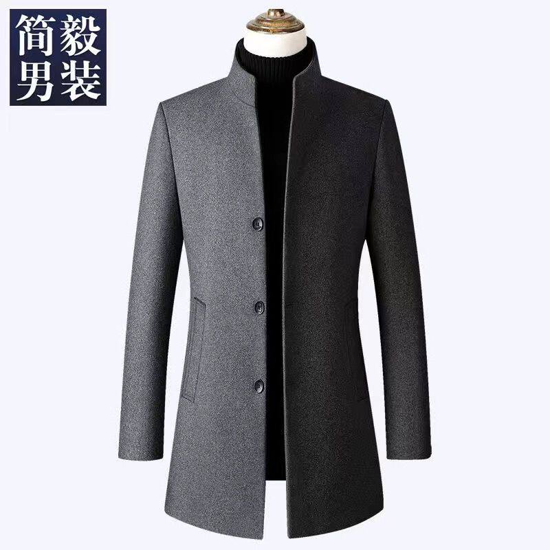 大衣 毛呢外套休闲风衣呢子男装 秋冬季 毛呢大衣男立领加厚中长款