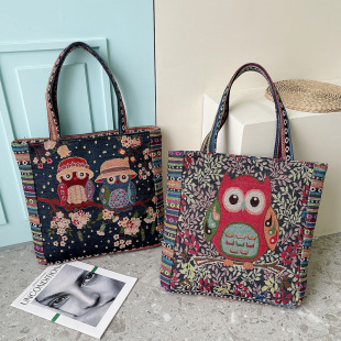 新款 大容量托特包卡通绣花学生包购物袋手提包大包单肩包休闲女包