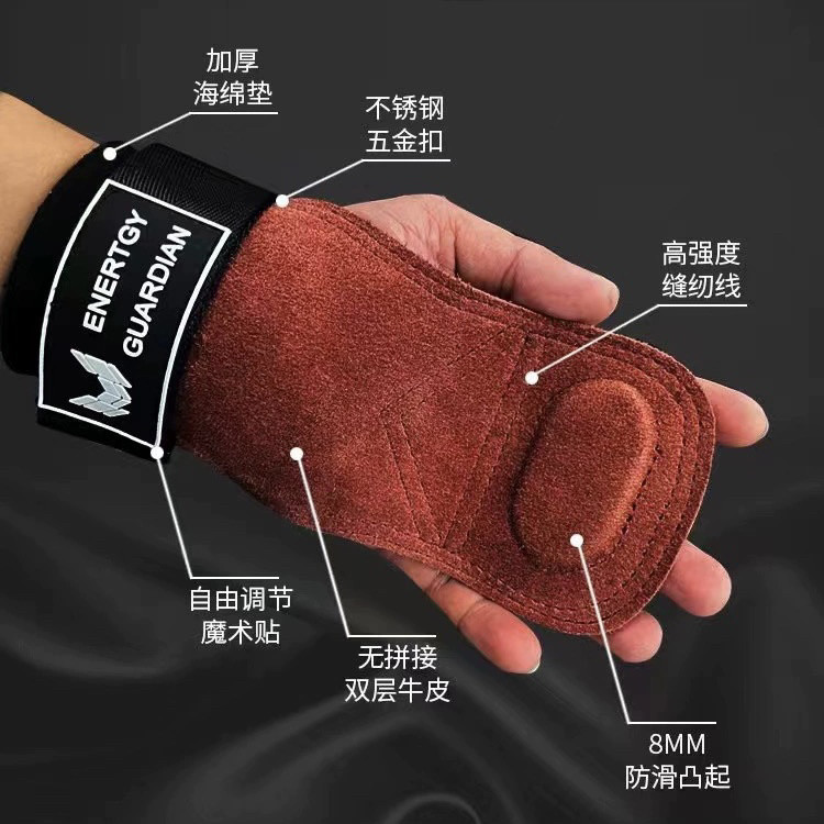 健身手套女防起茧护腕男骑行引体单杠手掌硬拉训练牛皮护掌助力带