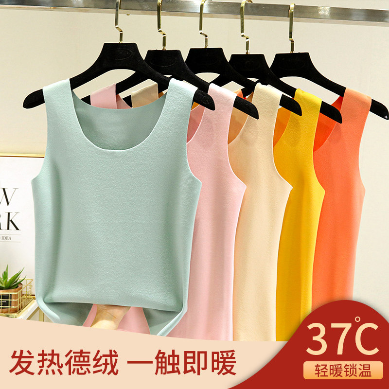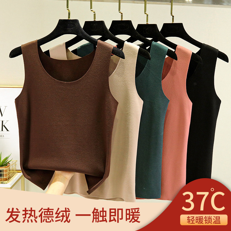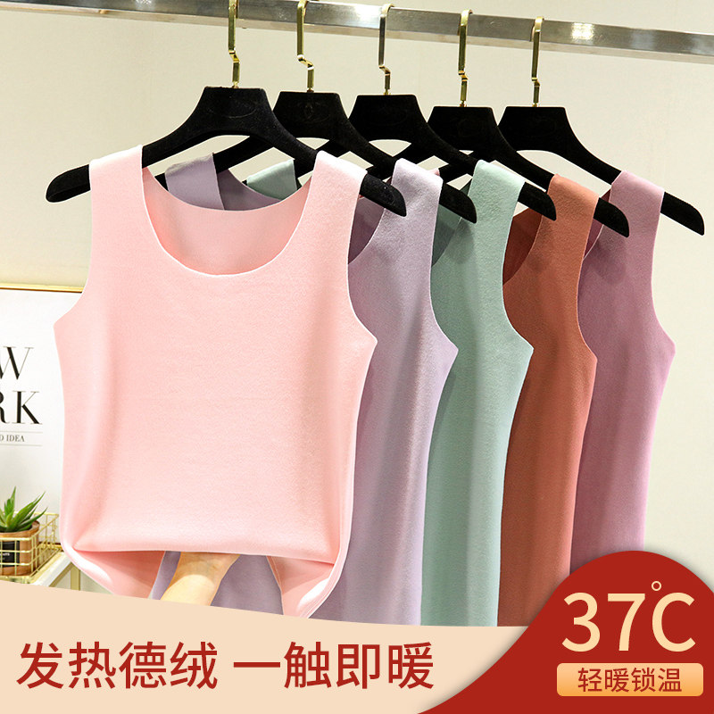 德绒吊带背心女加绒加厚女冬季 打底内穿无痕保暖内衣 自发热无袖