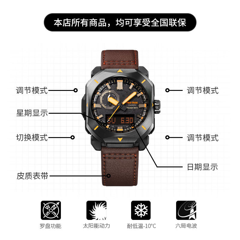 Casio卡西欧手表男PROTREK系列太阳能电波防水运动户外PRW 6900Y