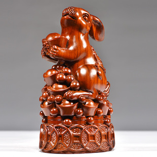 花梨木雕兔子摆件实木十二生肖动物雕刻家居桌面装 饰红木工艺礼品