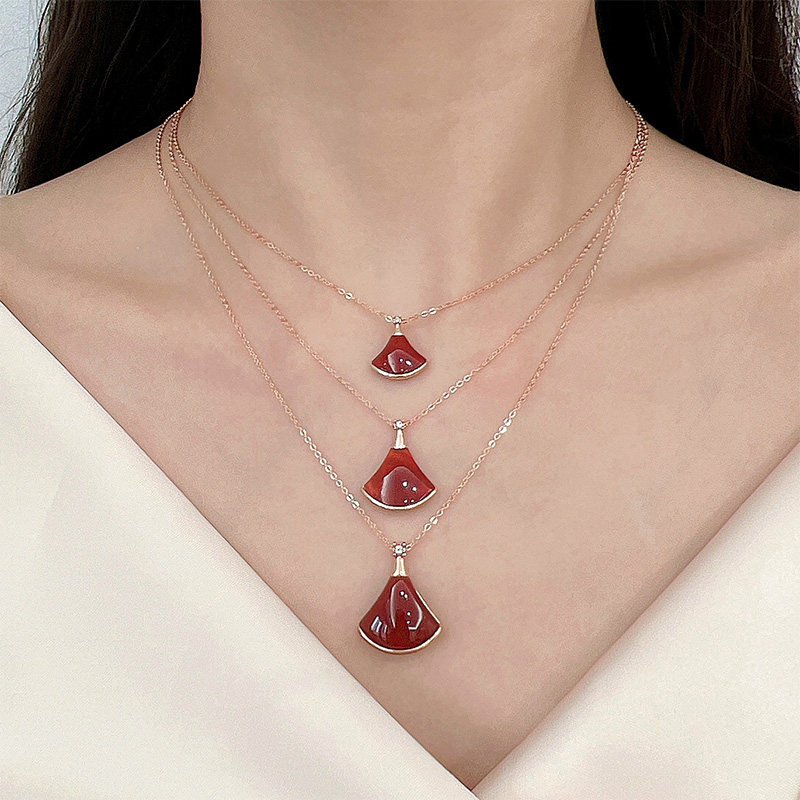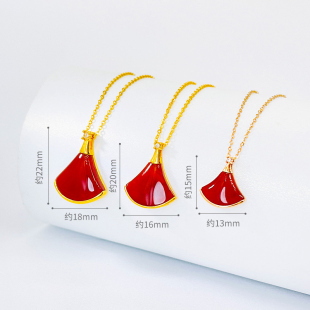 黛慕妮18K金小裙子项链玫瑰金AU750彩金扇形吊坠锁骨套链生日礼物