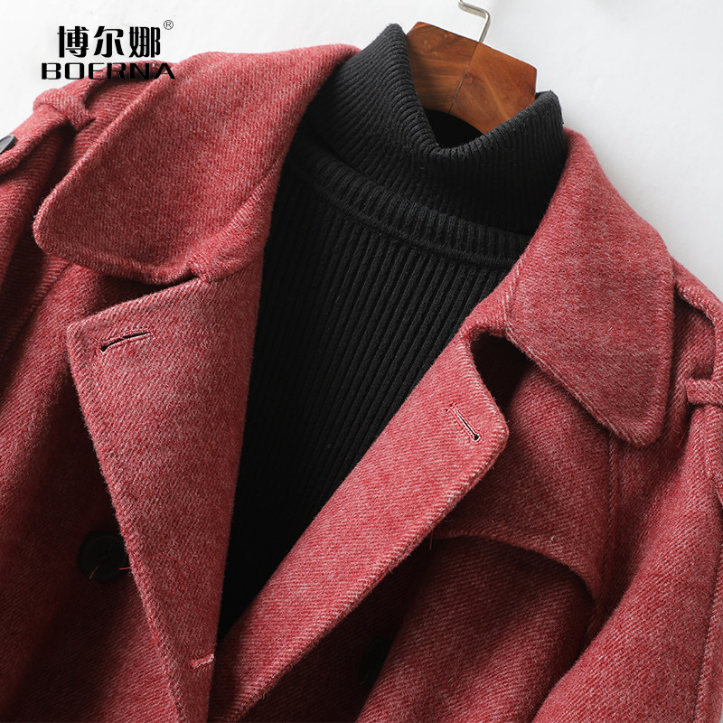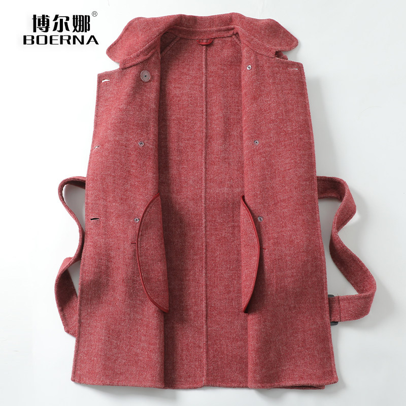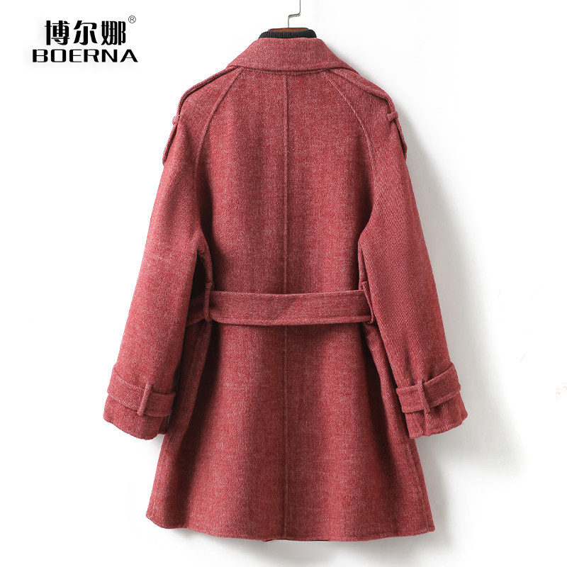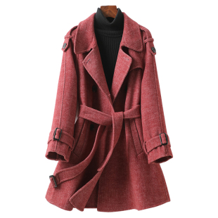 毛呢外套女中长系带人字纹韩版 高端双面羊毛大衣女 小个子冬秋新款