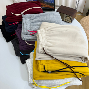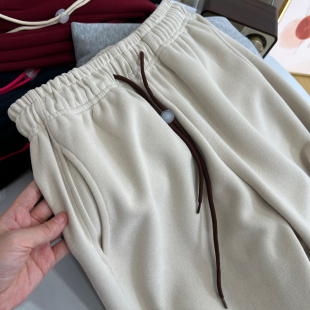慵懒宽松休闲直筒束脚两穿阔腿运动裤 撞色抽绳加绒卫裤 女春秋新款