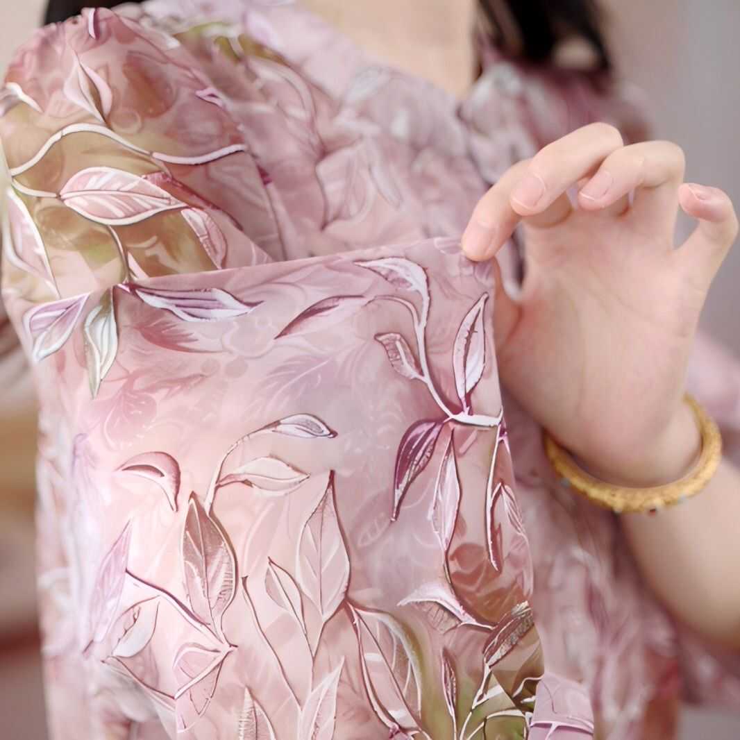 宽松小衫 2025早秋新款 上衣国风大码 减龄七分袖 气质显瘦花色雪纺衫