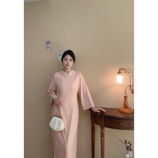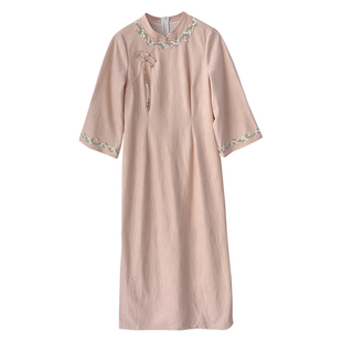 胖mm新中式 蜜桃清欢 大码 高端款 少女粉嫩旗袍连衣裙 自制款