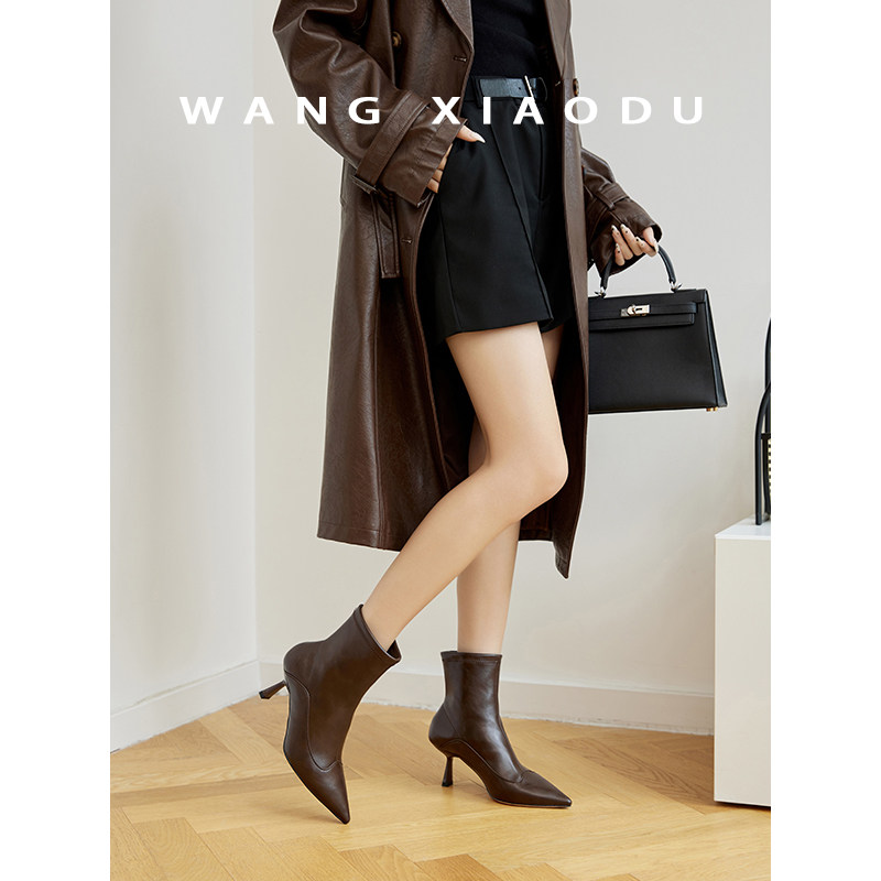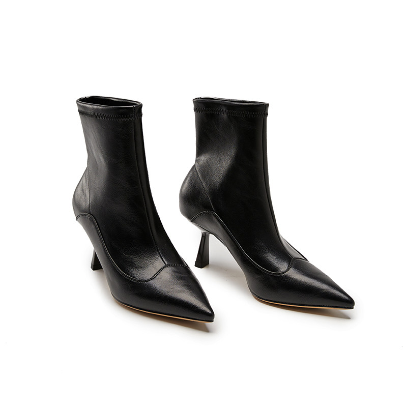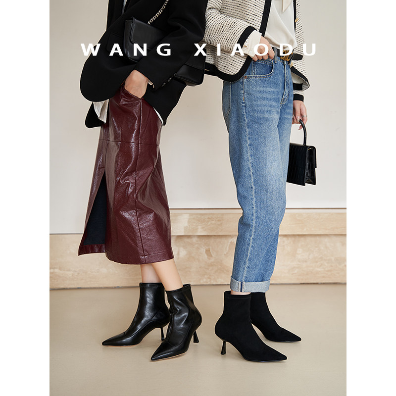 新款 7cm瘦瘦靴女细跟冬季 高跟宣言 尖头弹力短靴 王小毒