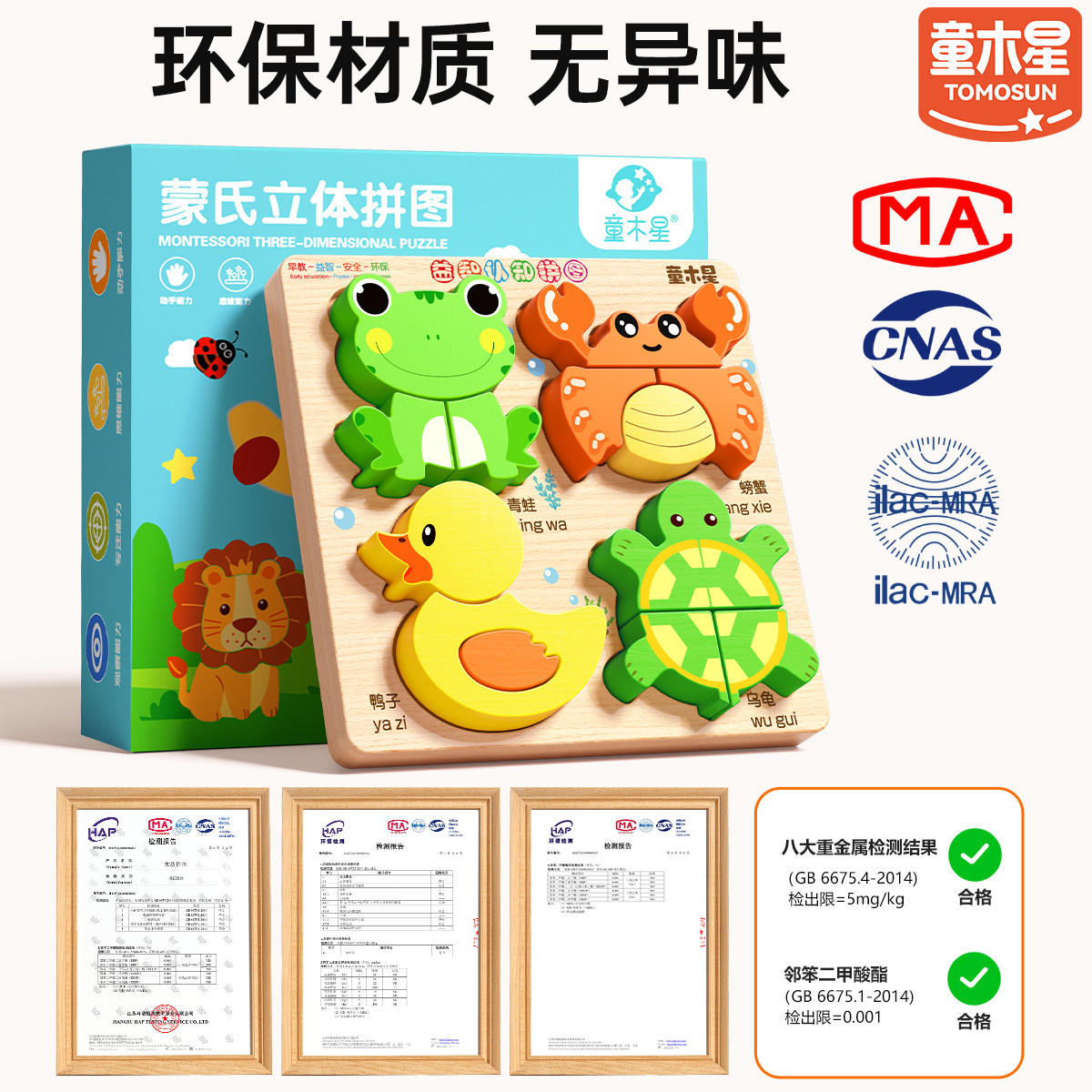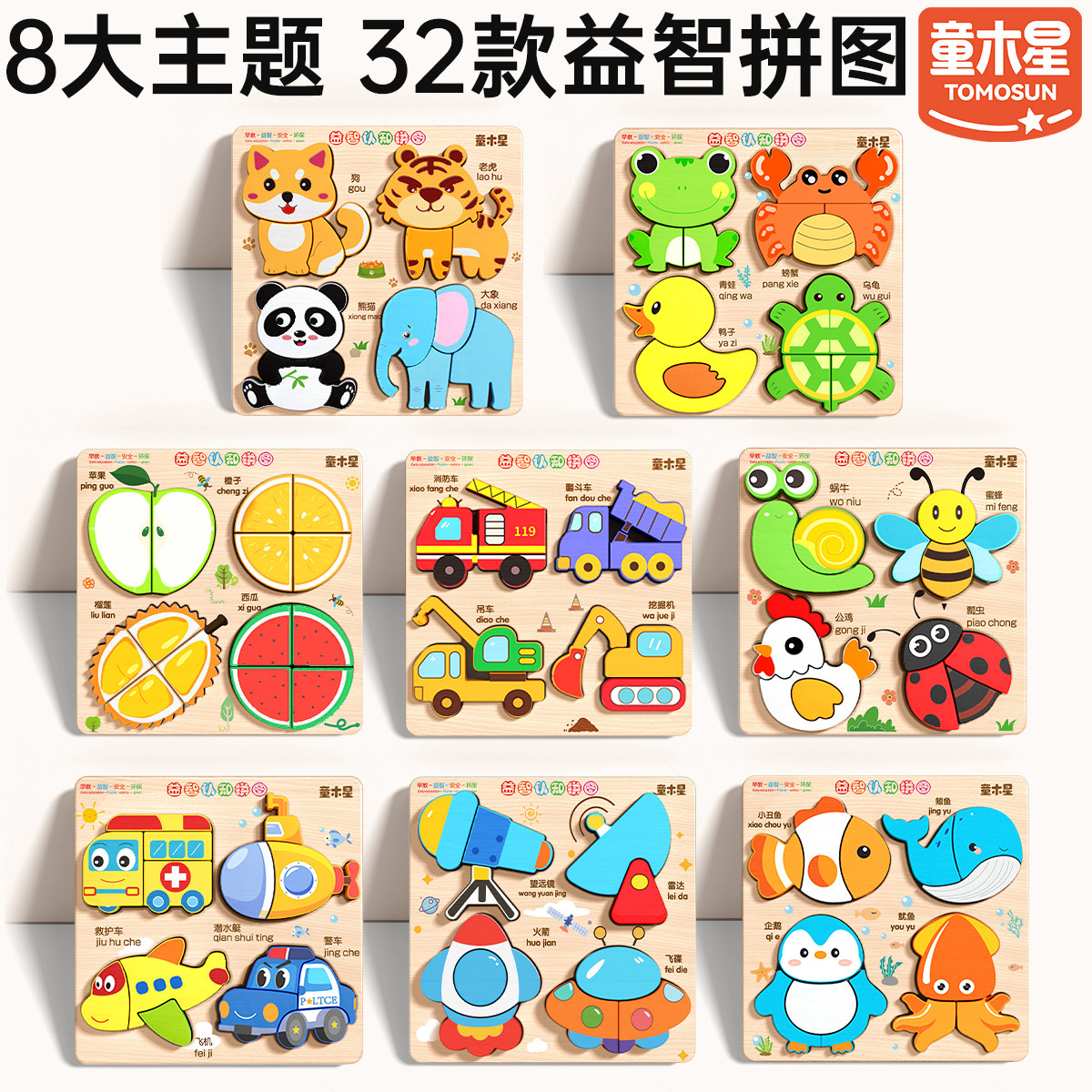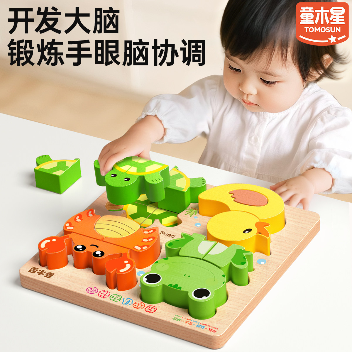 儿童益智拼图立体木质0到3岁宝宝智力早教男孩女拼装 积木玩具礼物