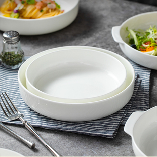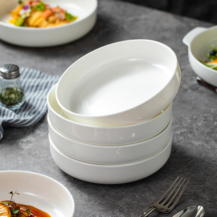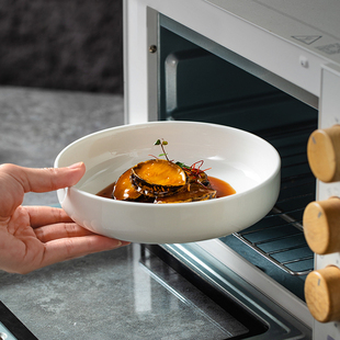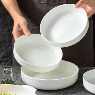 纯白盘子菜盘家用骨瓷深口圆盘高窝盘餐盘蒸鸡蛋羹专用盘蒸盘深盘