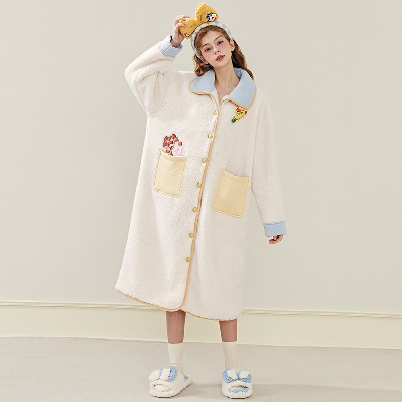 中长款 冬保暖睡衣家居服套装 睡袍毛绒浴袍加厚情侣款 三层加厚