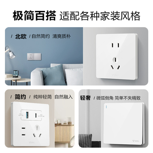 飞利浦86转换插座分控USB快充一转多功能多孔超薄无线带开关插座