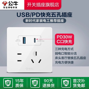 公牛插座USB多孔多功能插座家用带线插排接线板C口快充充电器