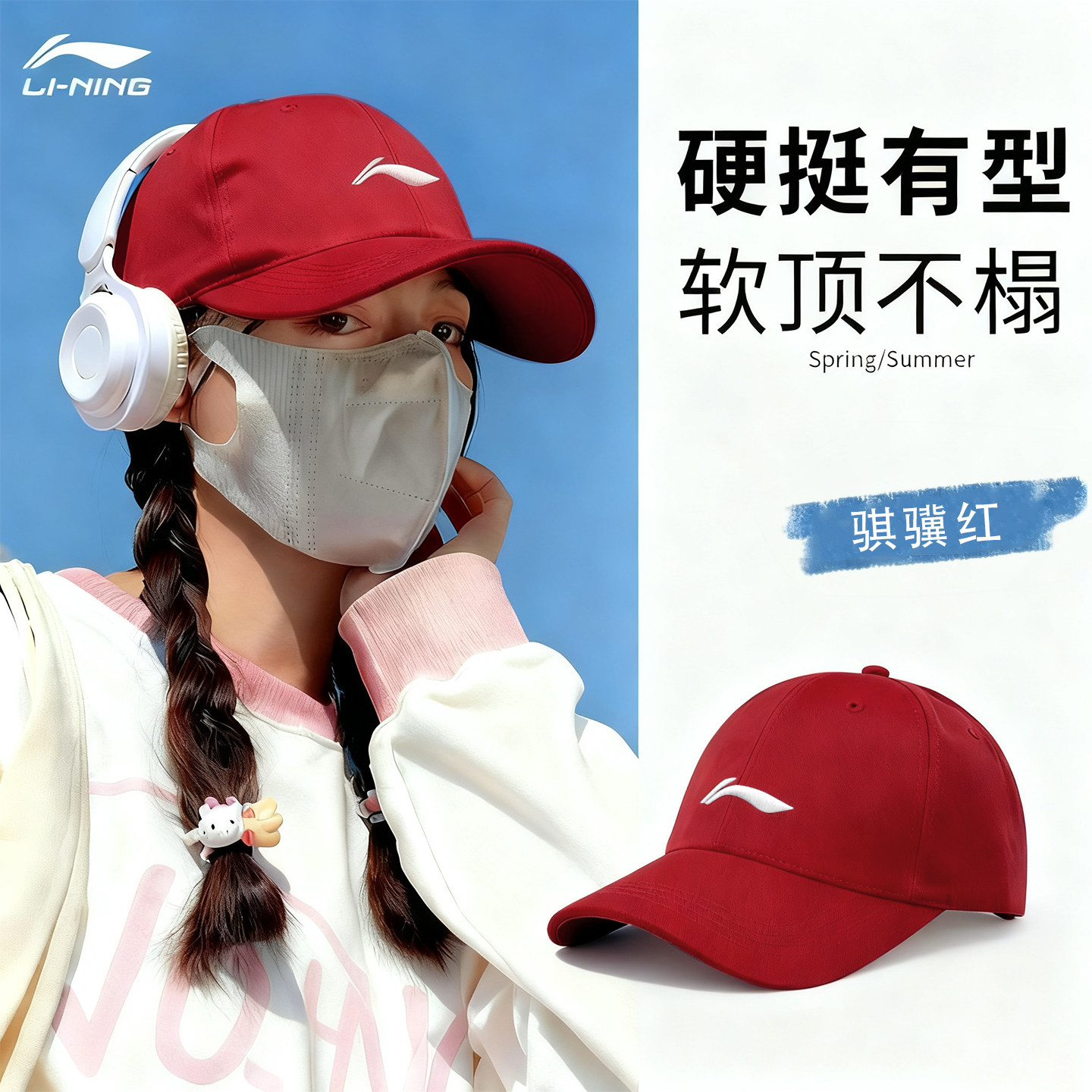 李宁帽子女新款 棒球帽硬顶大头围显脸小黑色鸭舌帽宽帽檐防晒帽男