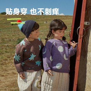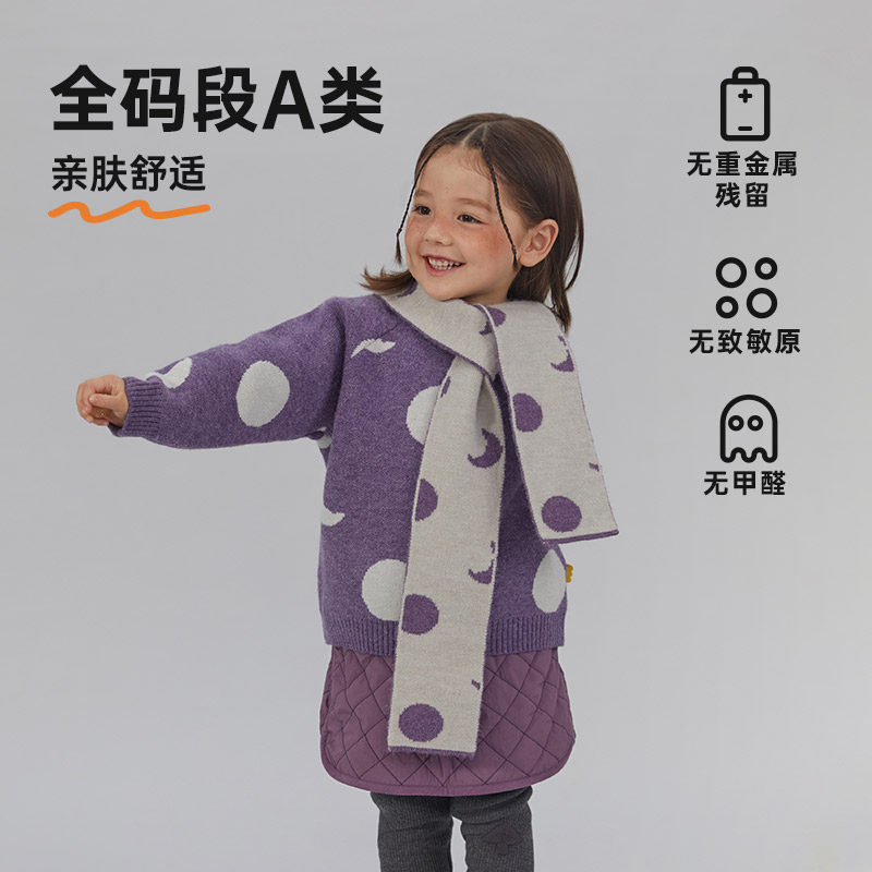papa爬爬冬儿童毛衣抗起球男女童加厚保暖圆领套头上衣 北极绒