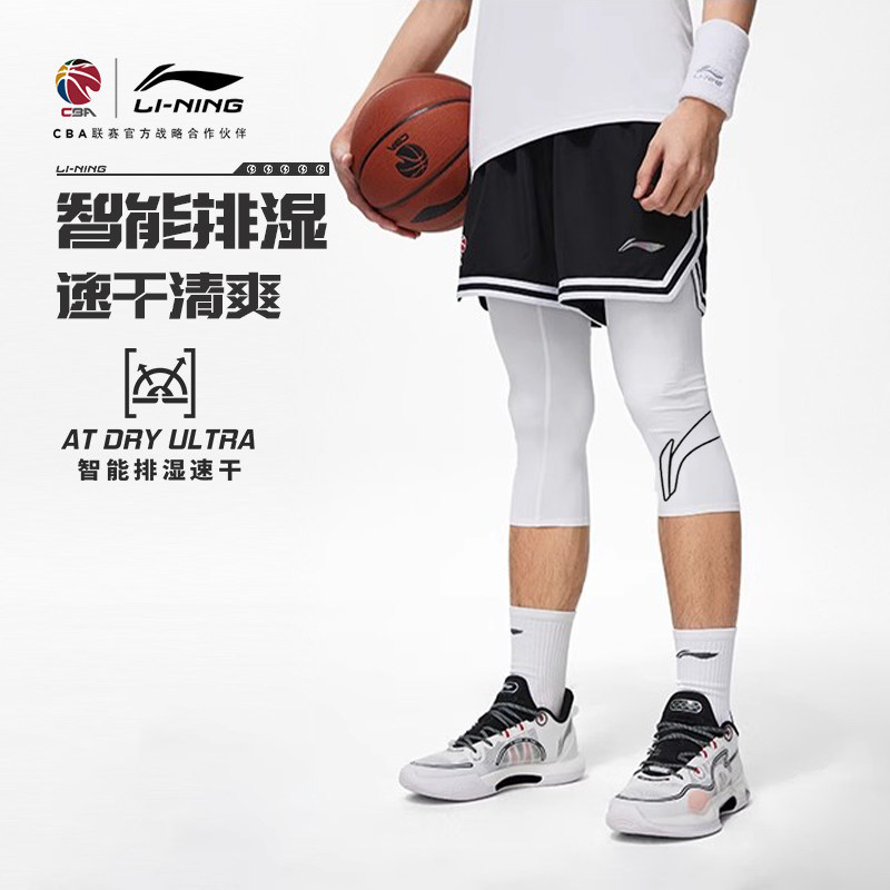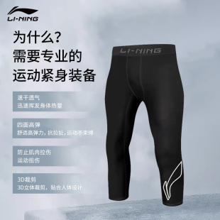 跑步打底短裤 李宁七分紧身裤 男运动健身高弹训练速干压缩裤