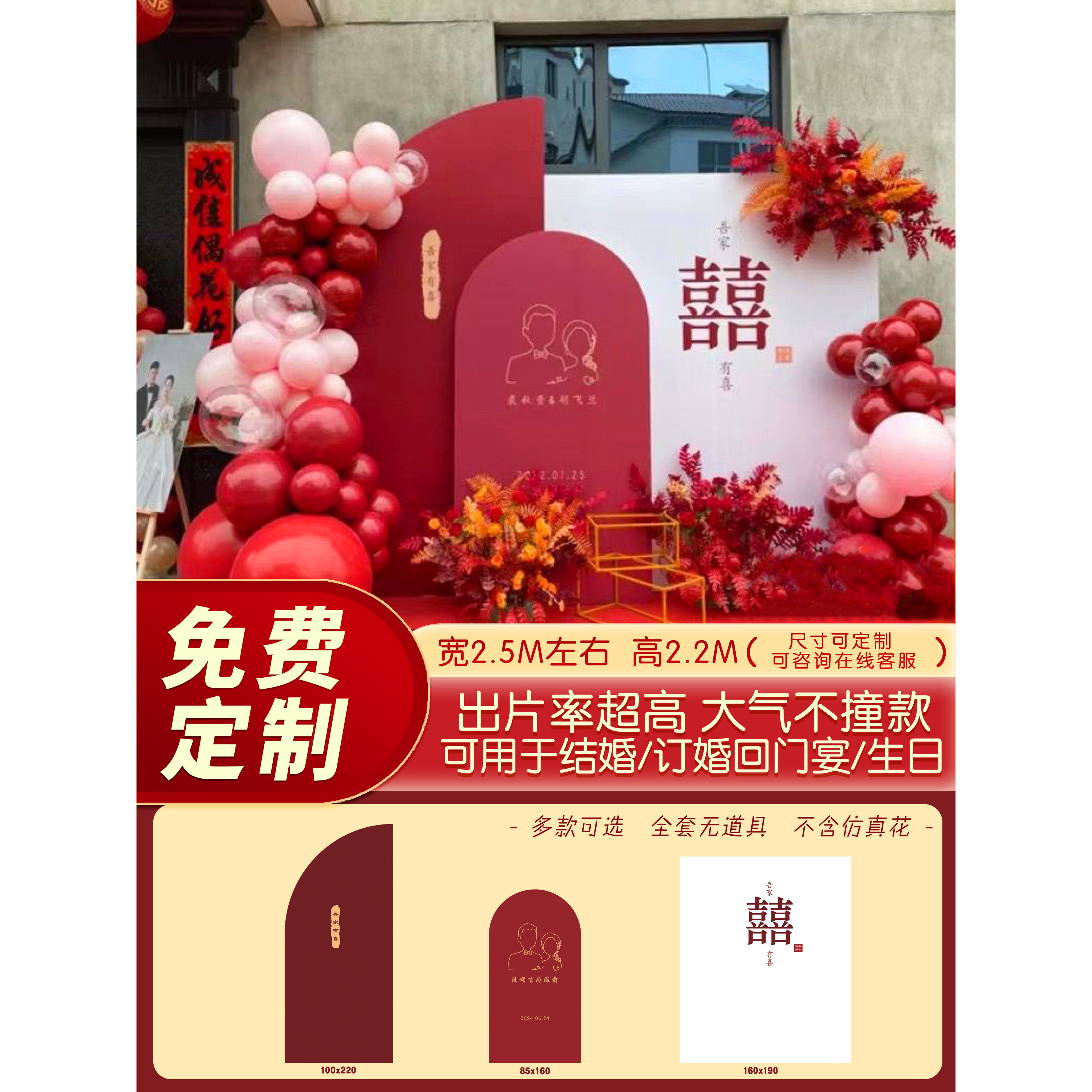饰 户外庭院装 KT板定制结婚背景墙订制婚礼订婚宴板中式 网红爆款