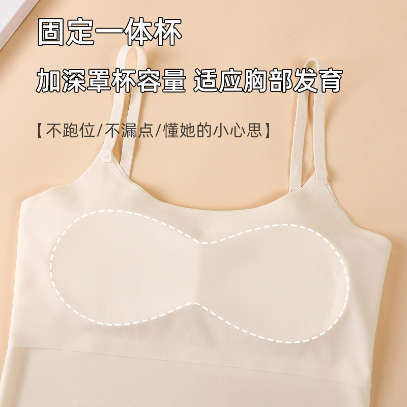 冰丝吊带背心女2024新款 美背学生少女内衣带胸垫一体内搭无痕文胸