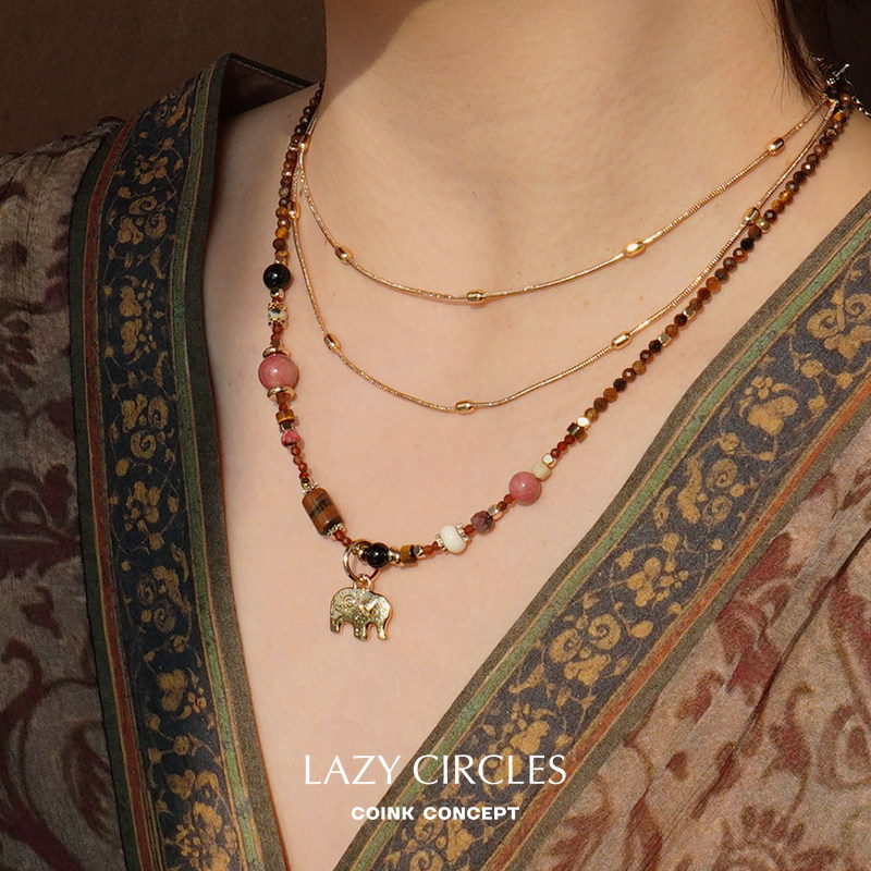 原创小众设计复古气质锁骨链 梦幻岛小象项链 默叙 CIRCLES LAZY