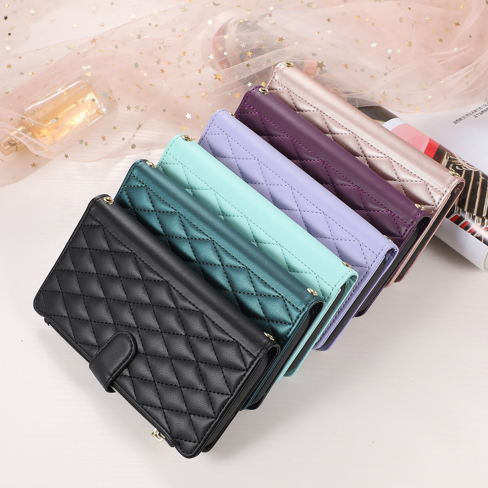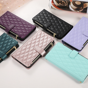 适用三星 A14 A55 A22 A52 A37 A53 防摔 菱形小香风拉链包 翻盖手机套 A15 A57 A33 A35 A72 A36 A17 Galaxy