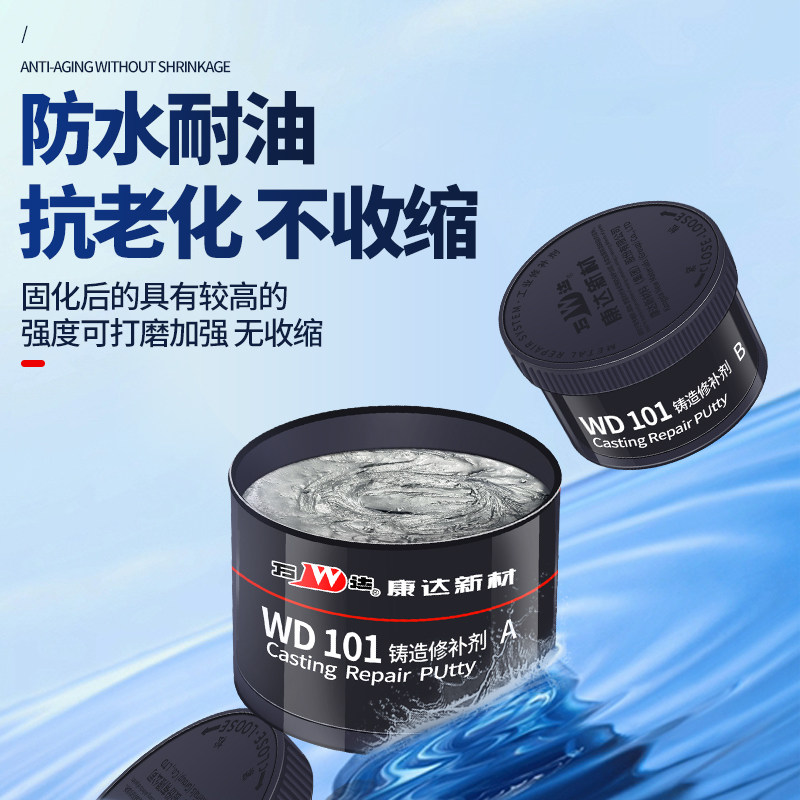 康达万达WD101金属修补剂耐高温铸造工业金属铁机械水泥生铁气孔裂缝砂眼修补ab胶防水耐油