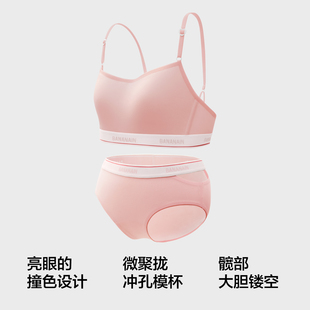 蕉内蕉蕉杯502S性感美背内衣女聚拢小胸甜酷撞色文胸内裤 胸罩套装
