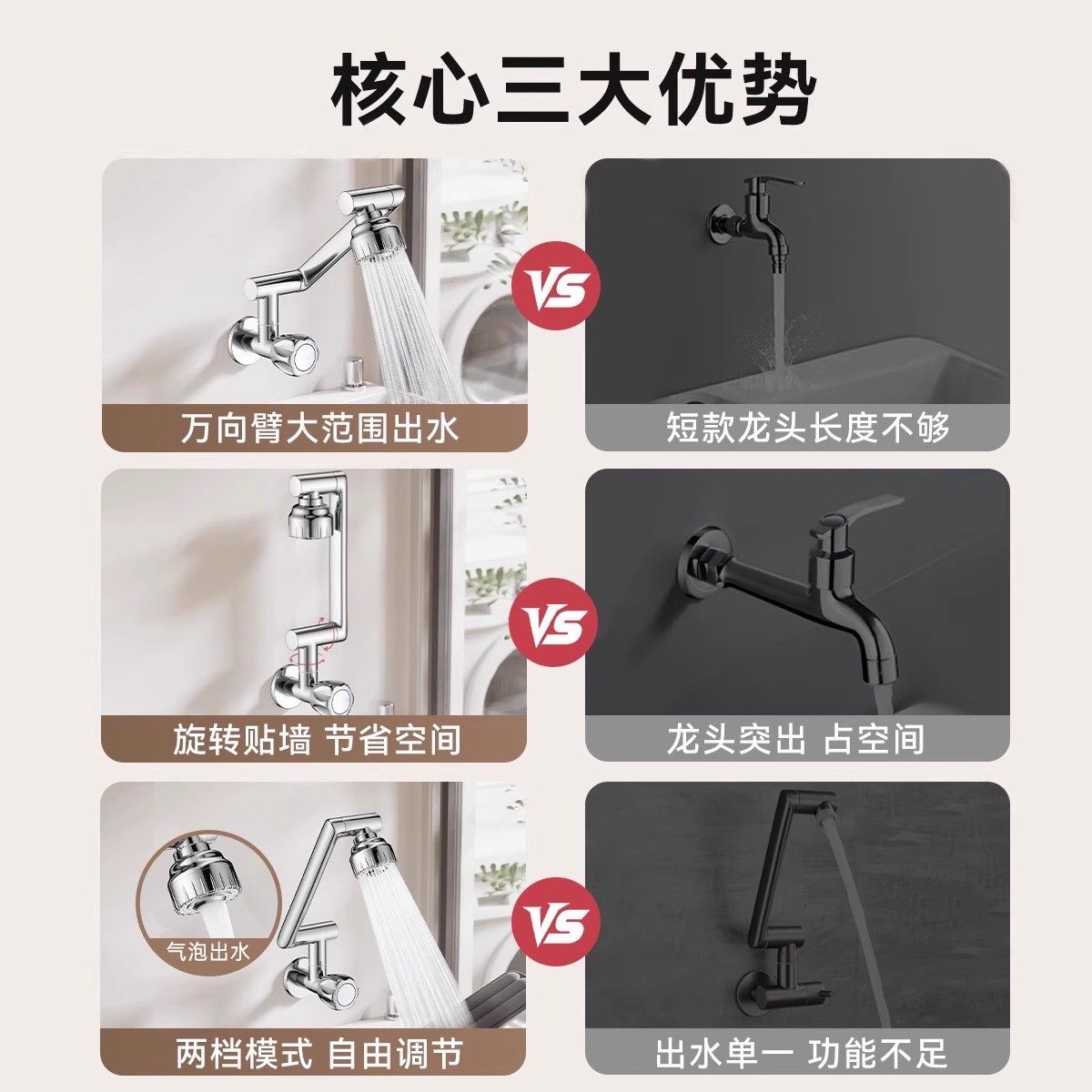 加高单冷入墙式 阳台拖把池专用水龙头加长可折叠万向旋转全铜龙头