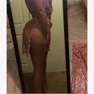 新款 欧洲站外贸夜店V领露背系链吊带交叉上衣钻石酷炫酒吧套裙