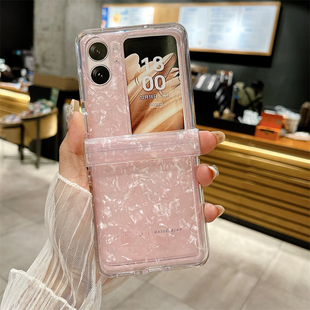 创意网红款 高级感保护套铰链全包防摔高端个性 女适用于 贝壳纹findn2flip折叠屏时尚 oppoFindn3flip手机壳新款