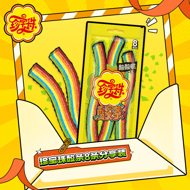 珍宝珠酸条糖果彩虹长舌头酸砂糖软糖橡皮糖贺年 任选7件 69元