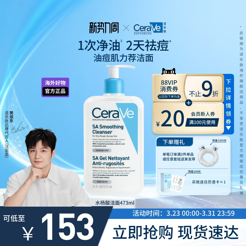 CeraVe适乐肤水杨酸洁面祛痘控油清洁男女士官方正品 海外店