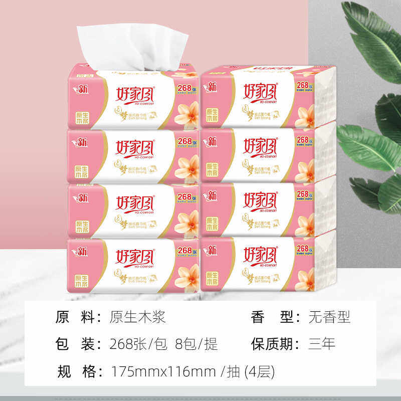 漫花纸巾家用实惠装 木浆整箱卫生纸抽批发实惠面巾纸餐巾纸手纸抽