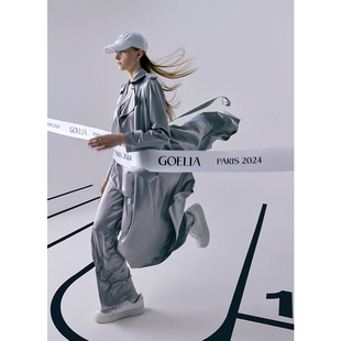 ByYou 收腰垂感英伦风休闲大衣 秋冬加厚夹棉白色风衣外套女中长款