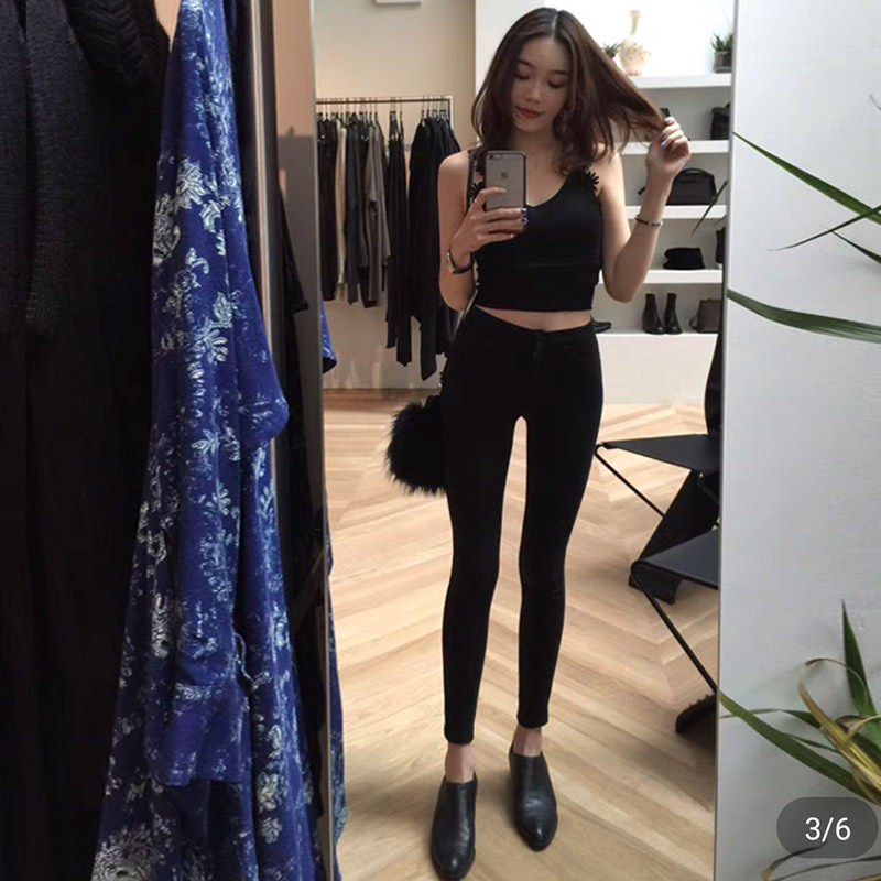 提臀铅笔裤 欧美新款 高腰修身 女小脚裤 弹力蜜桃臀紧身烟灰色牛仔裤
