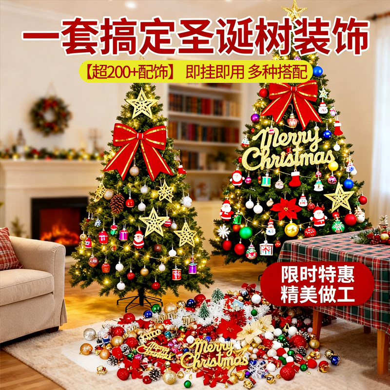圣诞节装 饰品圣诞树挂件配饰组合套餐包大型摆件吊饰diy材料包