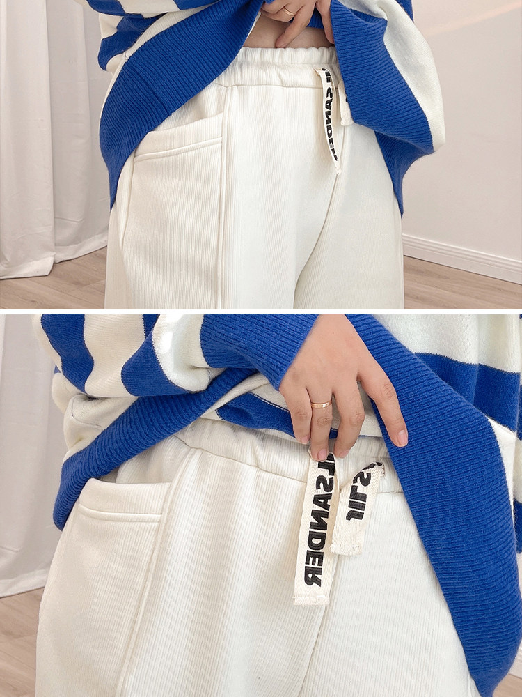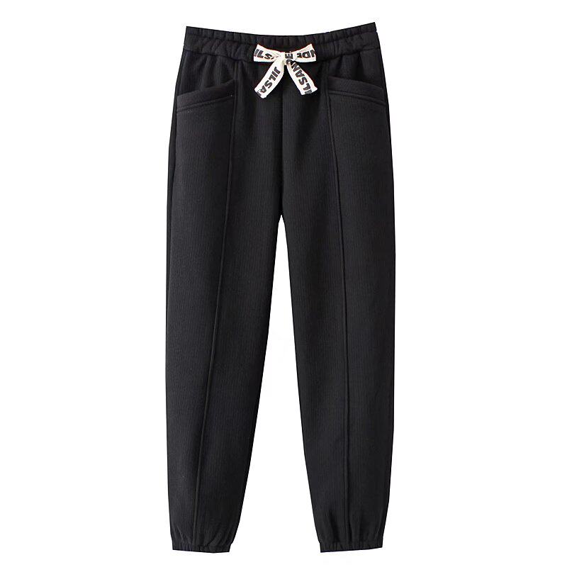 雪尼尔显瘦束脚卫裤 胖mm大码 加绒加厚高腰运动裤 子女冬季 灯芯绒裤