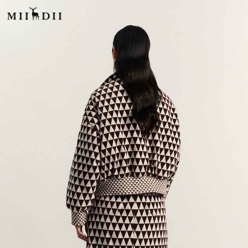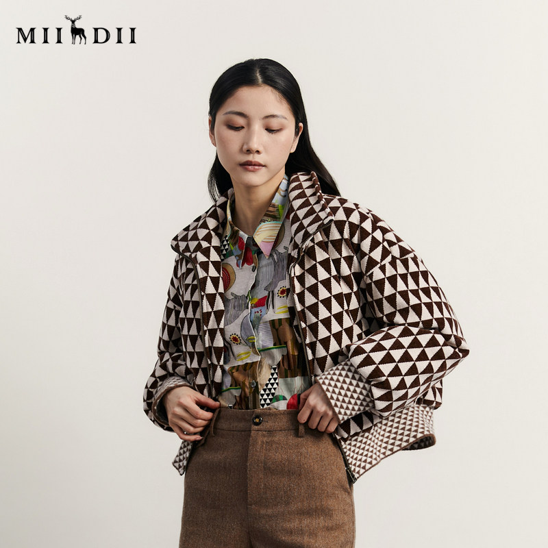 谜底雪尼尔羽绒服女冬新品 面包服234MY1594 复古花色立领短款