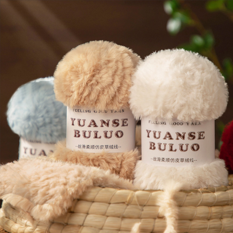 仿兔毛水貂绒皮草线毛线团织围巾毛线团粗毛线手织手工diy编织钩