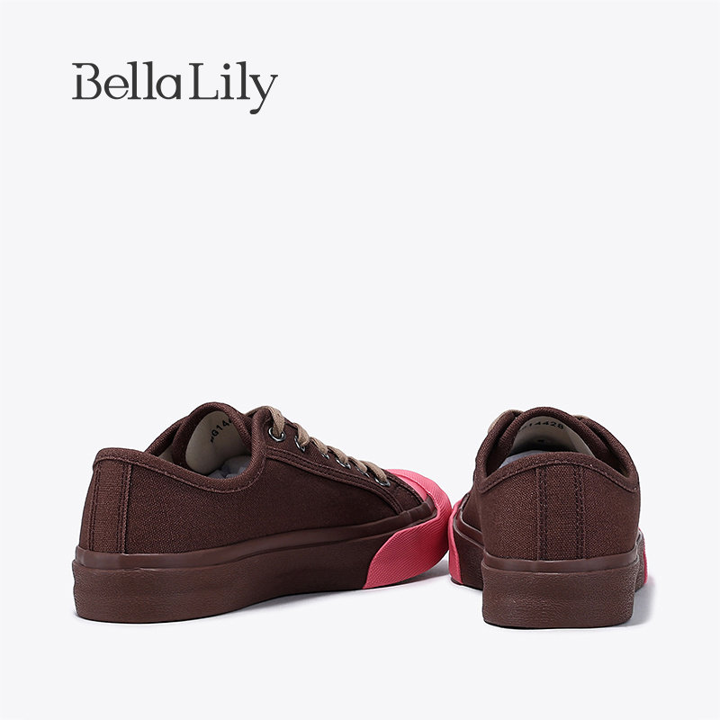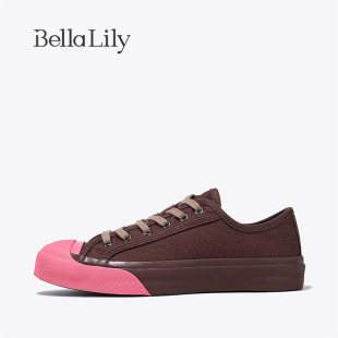 透气休闲鞋 女轻便板鞋 复古拼色平底帆布鞋 BellaLily新款