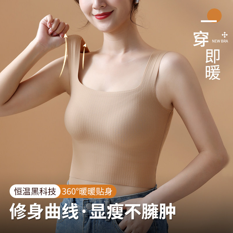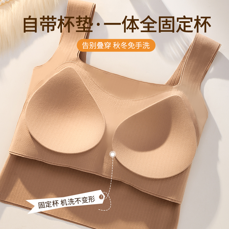 胸罩 显瘦一体式 梦芭蒂2025冬季 带胸垫免穿保暖背心加绒上衣女修身