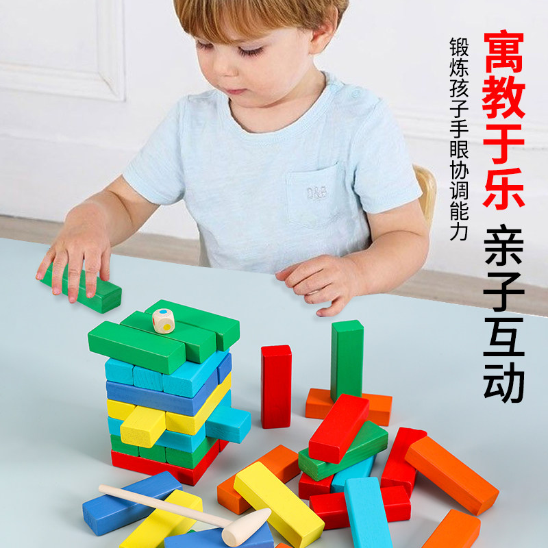 叠叠乐数字抽积木儿童亲子玩具大号叠叠高益智层层叠桌面游戏实木