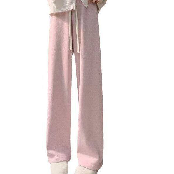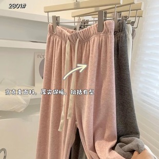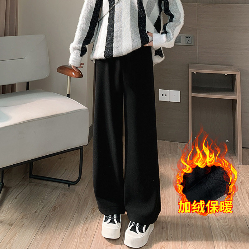 长裤 秋冬新款 针织加绒保暖慵懒休闲裤 女高腰垂感阔腿裤 灰色糯米裤