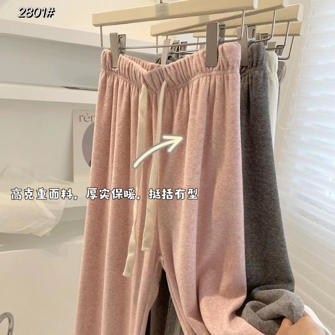 佐梦依加绒加厚休闲裤 弯刀阔腿裤