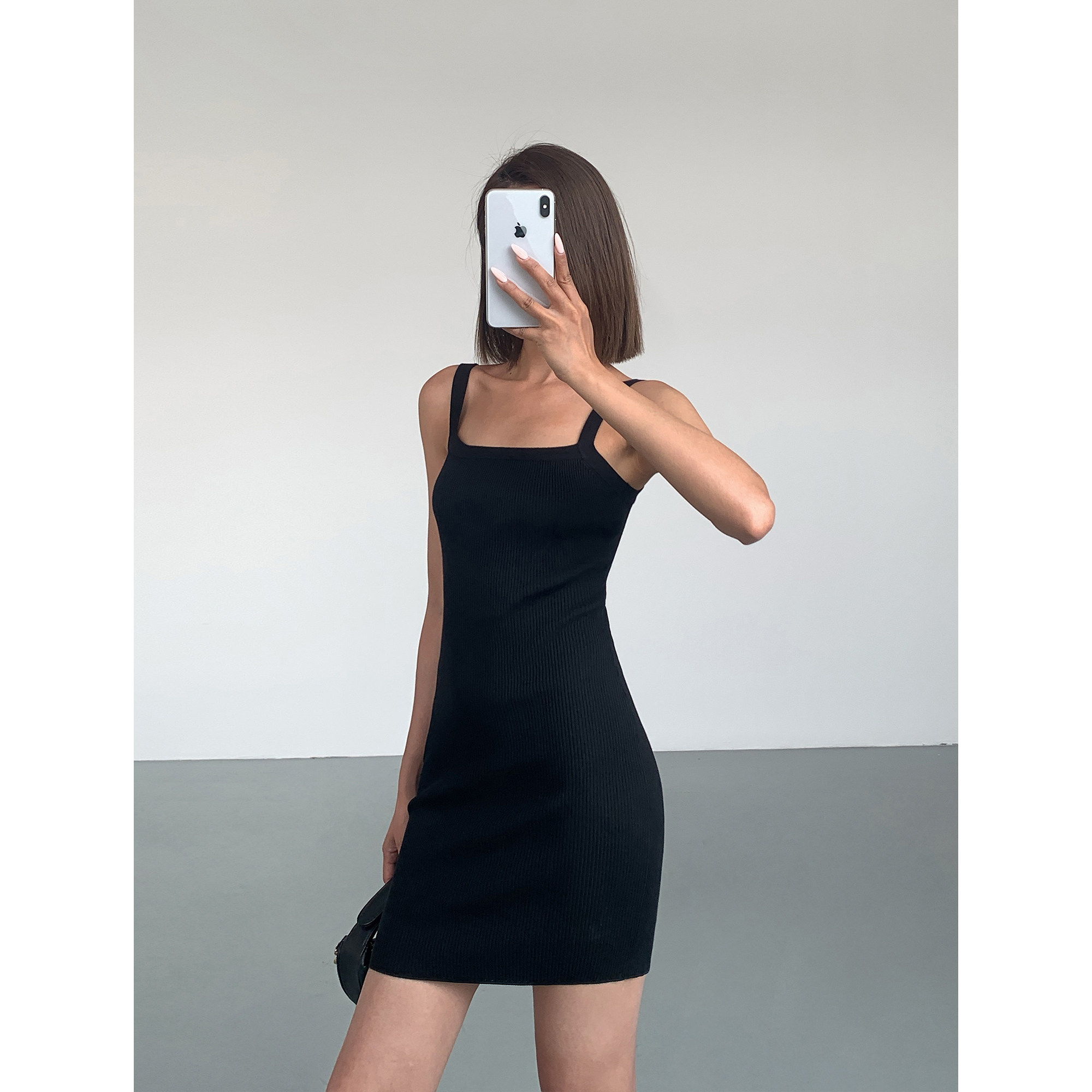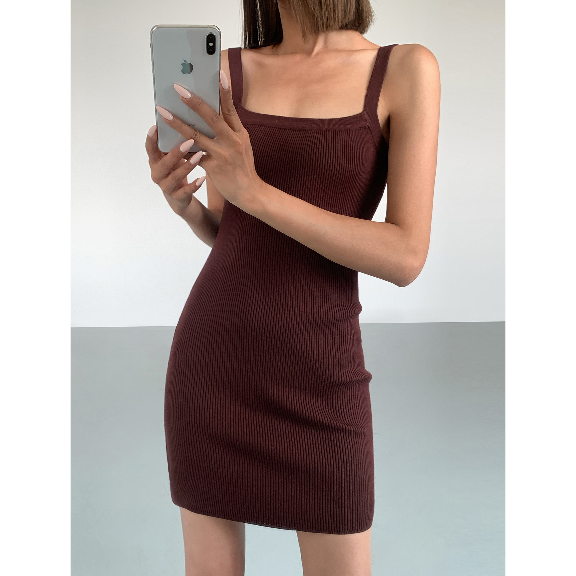 收腰后背镂空性感辣妹短款 针织吊带连衣裙修身 裙 现货4折 ousph