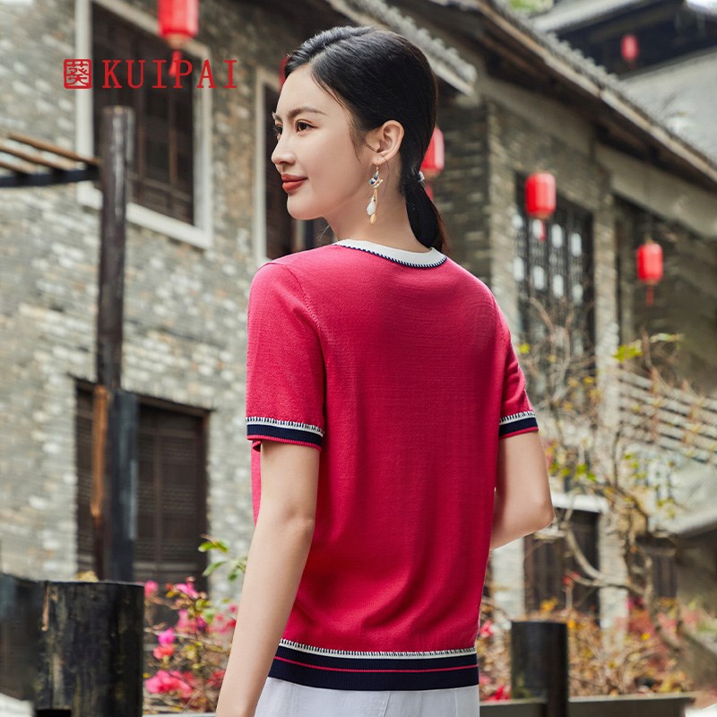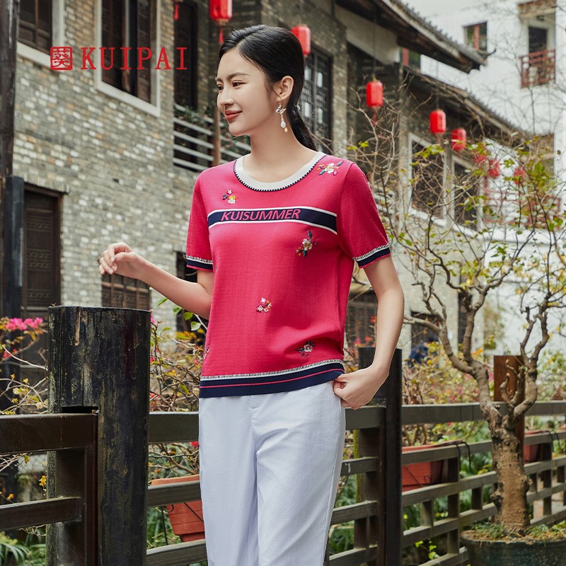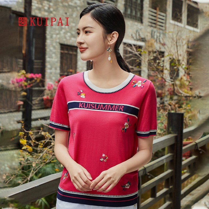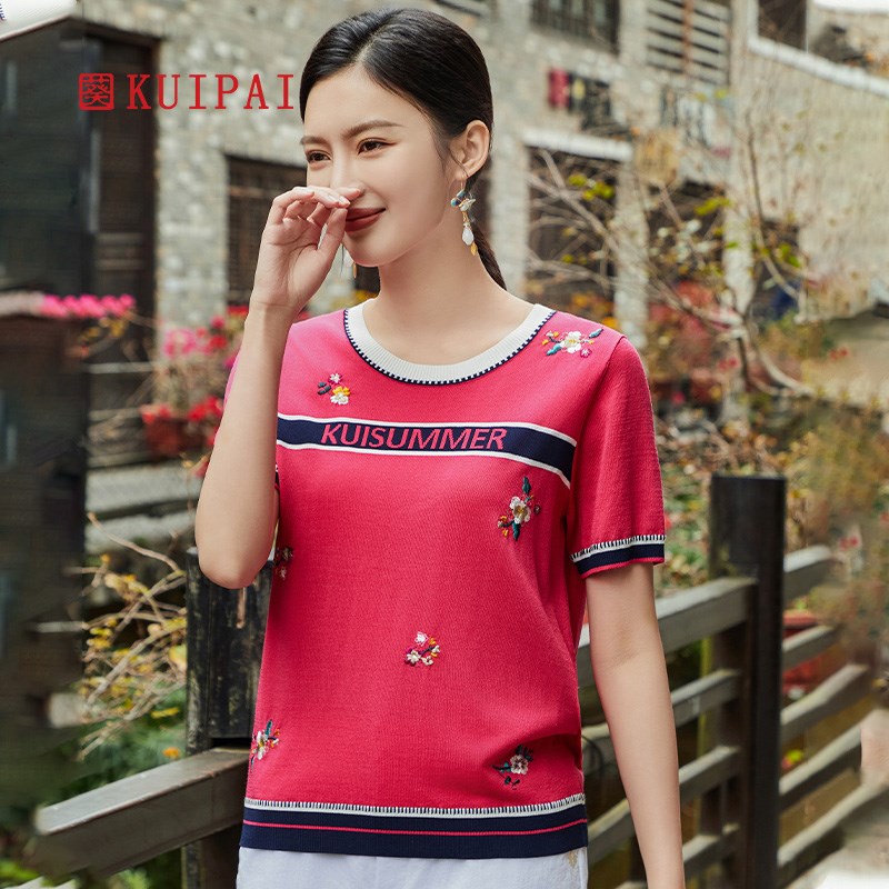 针织T恤衫 中年圆领罗纹口薄款 遮肚显瘦上衣 新品 葵牌妈妈2024夏装
