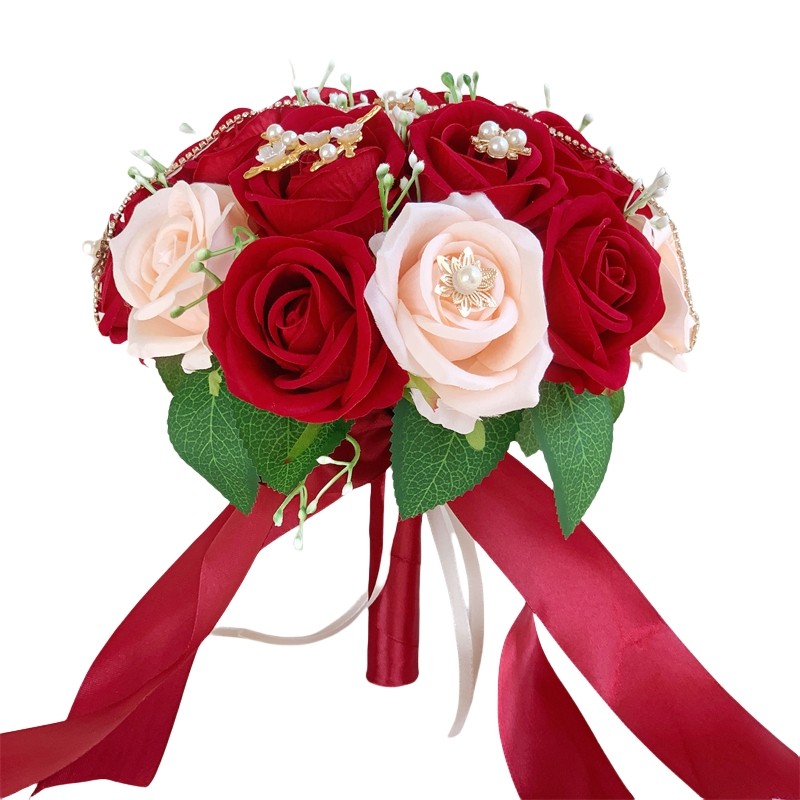 婚庆红色系仿真花束红果婚礼堂装 饰花艺吊顶花材花排插花绢花假花